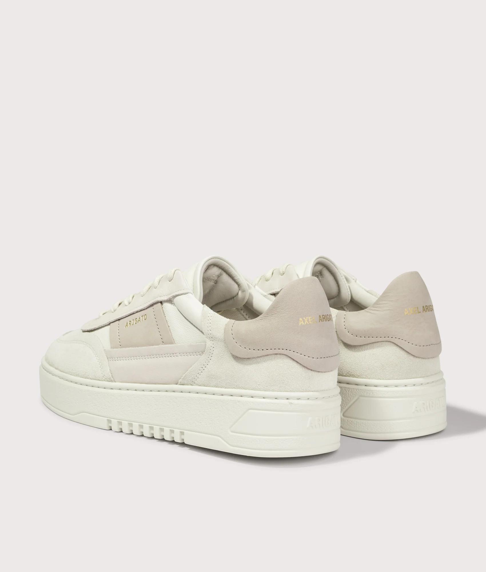 Inspired by retro silhouettes, the Axel Arigato Orbit Edge sneaker, arrive this season in the Light Beige and Light Taupe colourway. Handcrafted in Portugal from premium suede and leather panels, outlined by contrasting threads, fitted with a lace up closure with flat laces. Sat on a chunky rubber sole with an Arigato pattern to the tread, finished with branding to the back of the sole and Axel Arigato gold logo stamps to the heel tab and to the side panel.