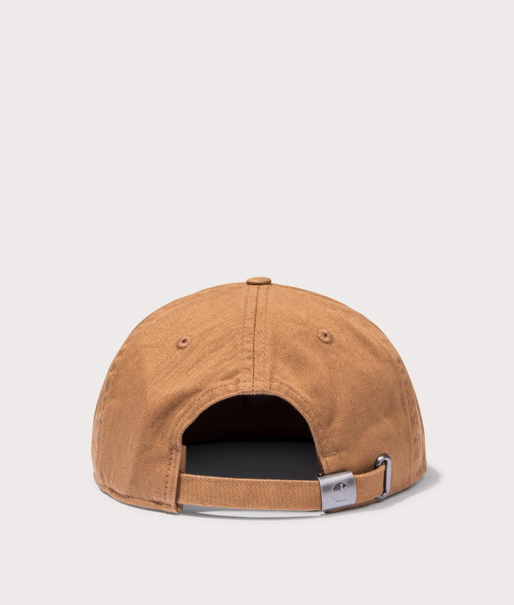 The Onyx Cap by Carhartt WIP in Hamilton Brown/Black is an off-duty essential. Constructed by 100% Cotton Twill and garment washed for a preloved look. Featuring a six panel structure and lined at the front panel with embroidered ventilation eyelets with an adjustable strap and personalised metal buckle graphic embroidery. Detailed with Carhartt WIP embroidery to the front.