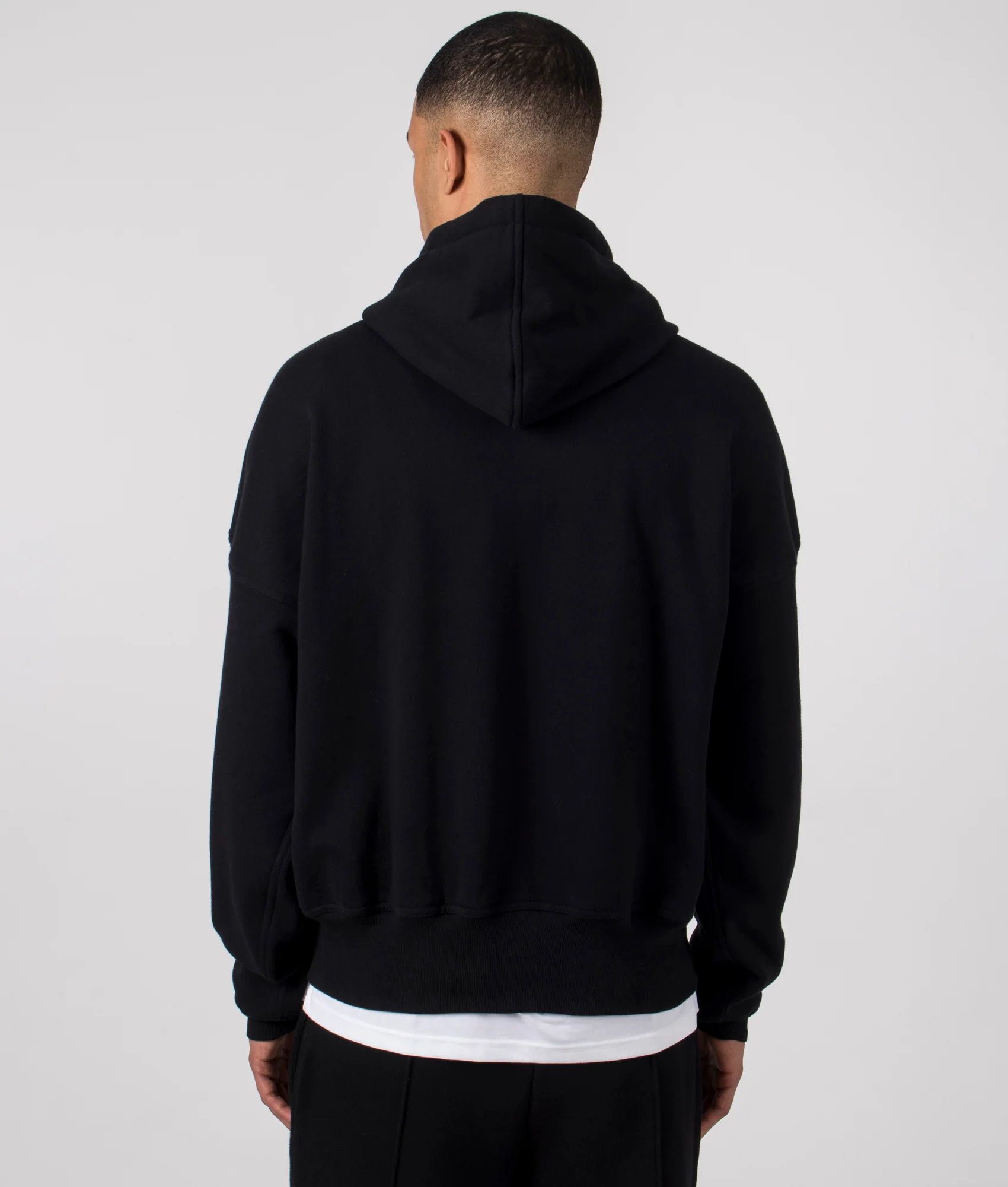 Luxury essentials from the Florence Black collection, this Oversized 1954 Hoodie is available in this core black colourway this season. The hoodie is cut to an oversized cropped fit, with dropped shoulders and long sleeves to create that stacking effect through the arm. This hoodie also features subtle panelling detailing down the inside of the sleeves & body seams, an extended hem for a bold feature & hidden drawstrings to allow functionality whilst keeping the garment minimal. All seams have been finished with a luxury cover stitch and this garment has been finished with the brands signature reverse hand-stitched label detailing and embroidered 1954 stitching to the left of the chest.