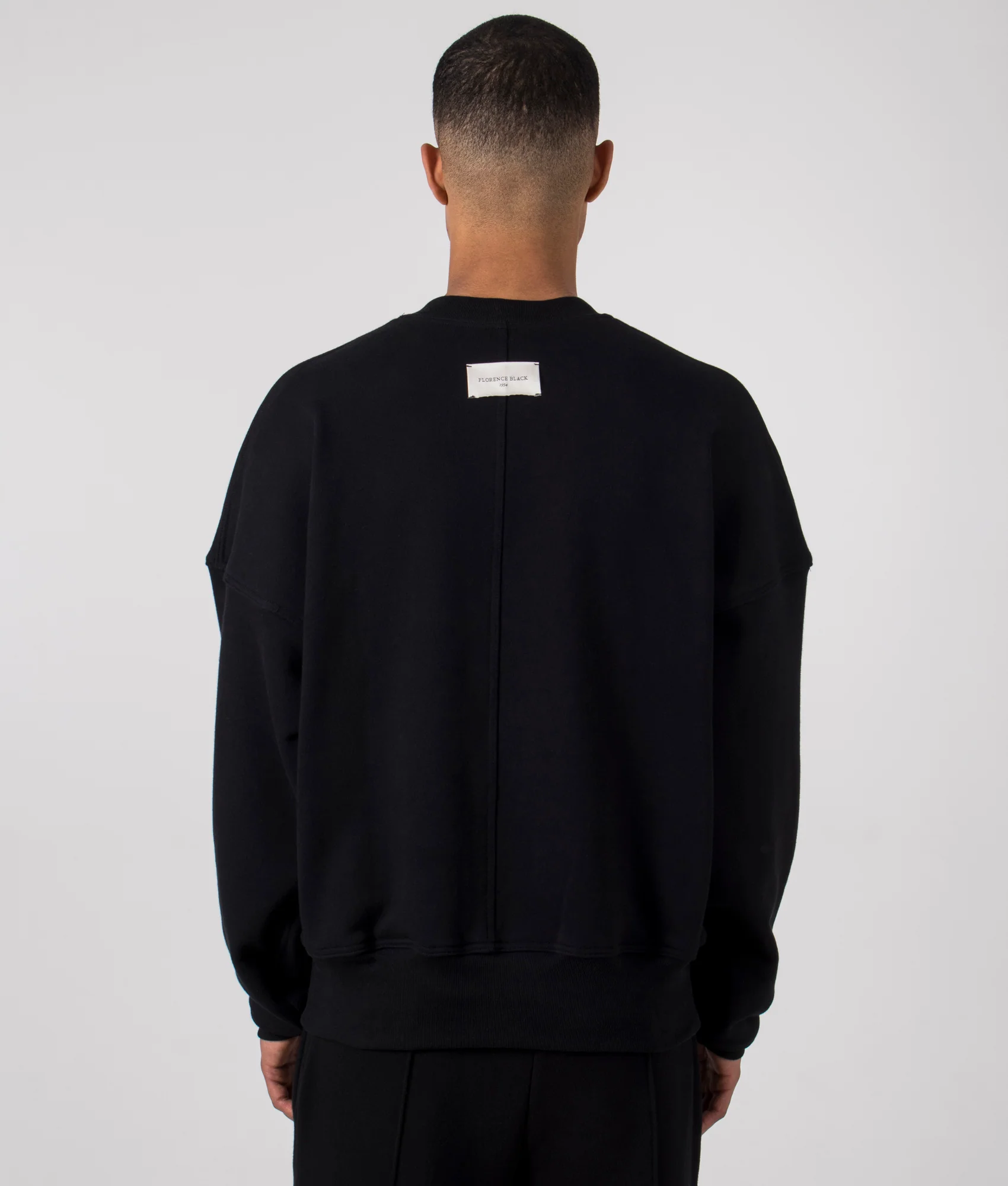 Luxury essentials from the Florence Black collection, this Oversized 1954 Sweatshirt is available in this core black colourway this season. The sweatshirt is cut to an oversized cropped fit, with dropped shoulders and long sleeves to create that stacking effect through the arm. This sweatshirt also features subtle panelling detailing down the inside of the sleeves & body seams, an extended hem for a bold feature & hidden drawstrings to allow functionality whilst keeping the garment minimal. All seams have been finished with a luxury cover stitch and this garment has been finished with the brands signature reverse hand-stitched label detailing and embroidered 1954 stitching to the left of the chest.