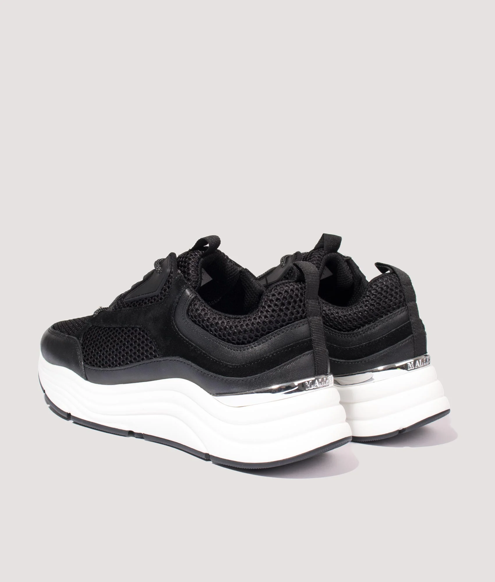 The black Cyrus Sneakers by Mallet are the perfect luxury streetwear sneakers to finish off your style. These sneakers combine different materials and textures, including smooth calfskin and hexagonal mesh. They have a bold, sportswear aesthetic with round laces and features the trademark Mallet heel clip. These sneakers can be worn with any casual piece for a sporty and contemporary silhouette.