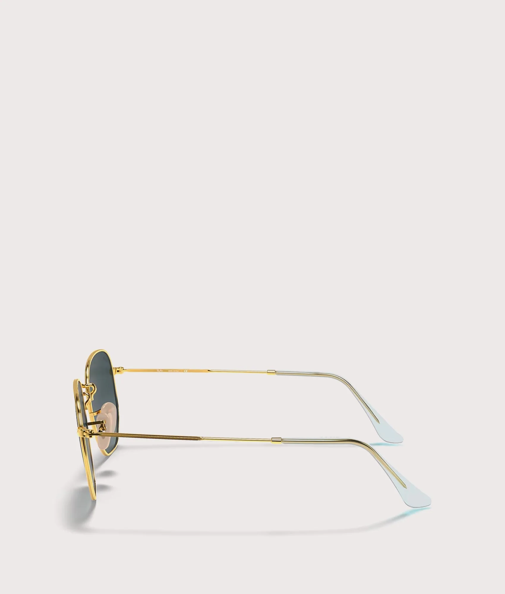 The Ray-Ban Hexagonal Flat Lenses Sunglasses offer a sleek and stylish twist on vintage eyewear. Featuring a distinctive hexagonal shape and slim polished arista gold-tone metal frame, these sunglasses combine modern sophistication with timeless charm. The flat blue lenses provide excellent UV protection and a refined finish, making them a versatile accessory for any look.