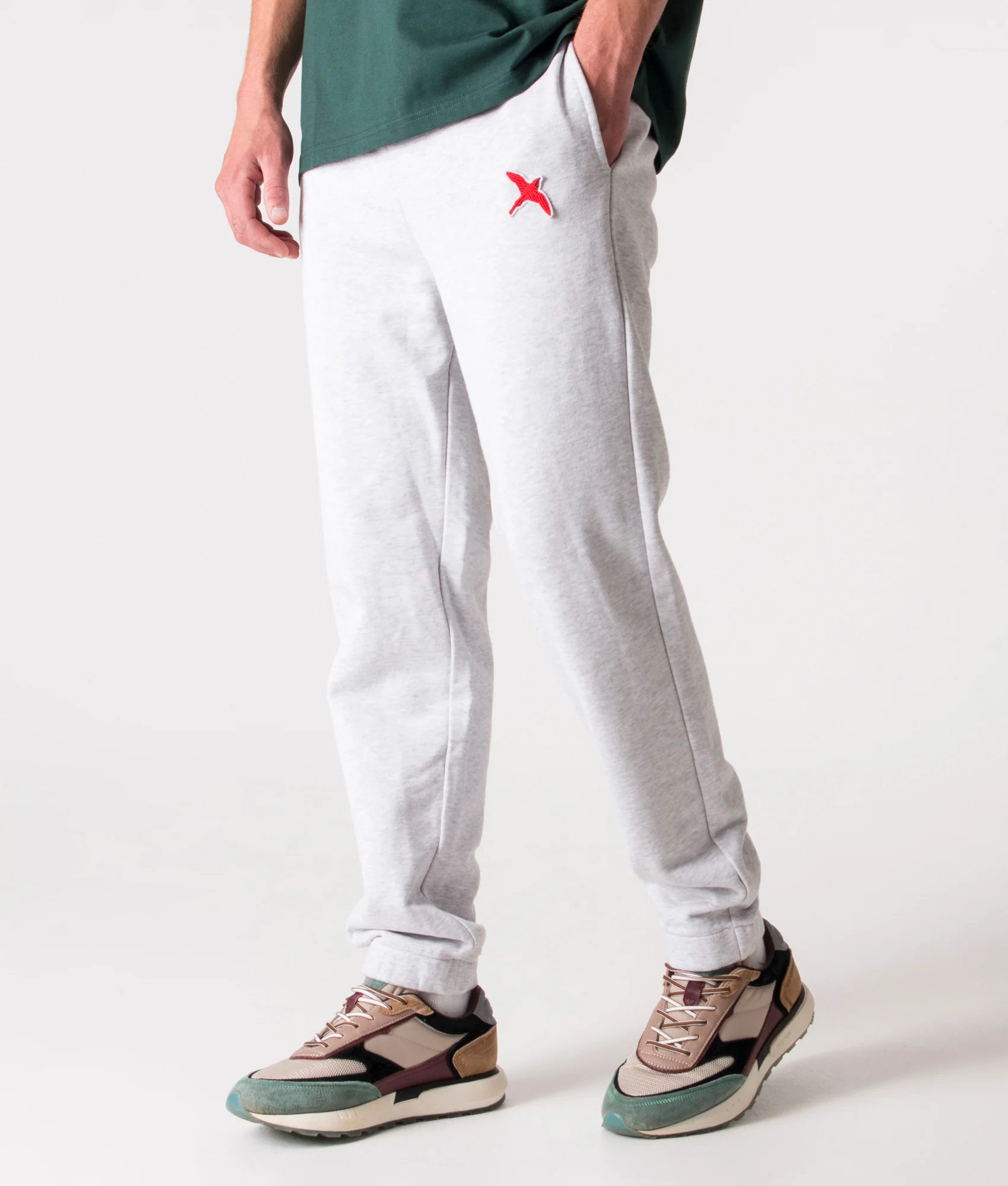The Relaxed Fit Rouge Bee Bird Joggers in 'Light Grey Melange' by Axel Arigato are relaxed fitting joggers, which have been crafted from 100% organic cotton, aiding for a sustainable style. This style incorporates an adjustable drawstring waistband, allowing for a the perfect fit for an off duty style choice. Featuring the signature Axel Arigato bee bird embroidered patch logo, which adorns the left leg in a contrasting fashion.